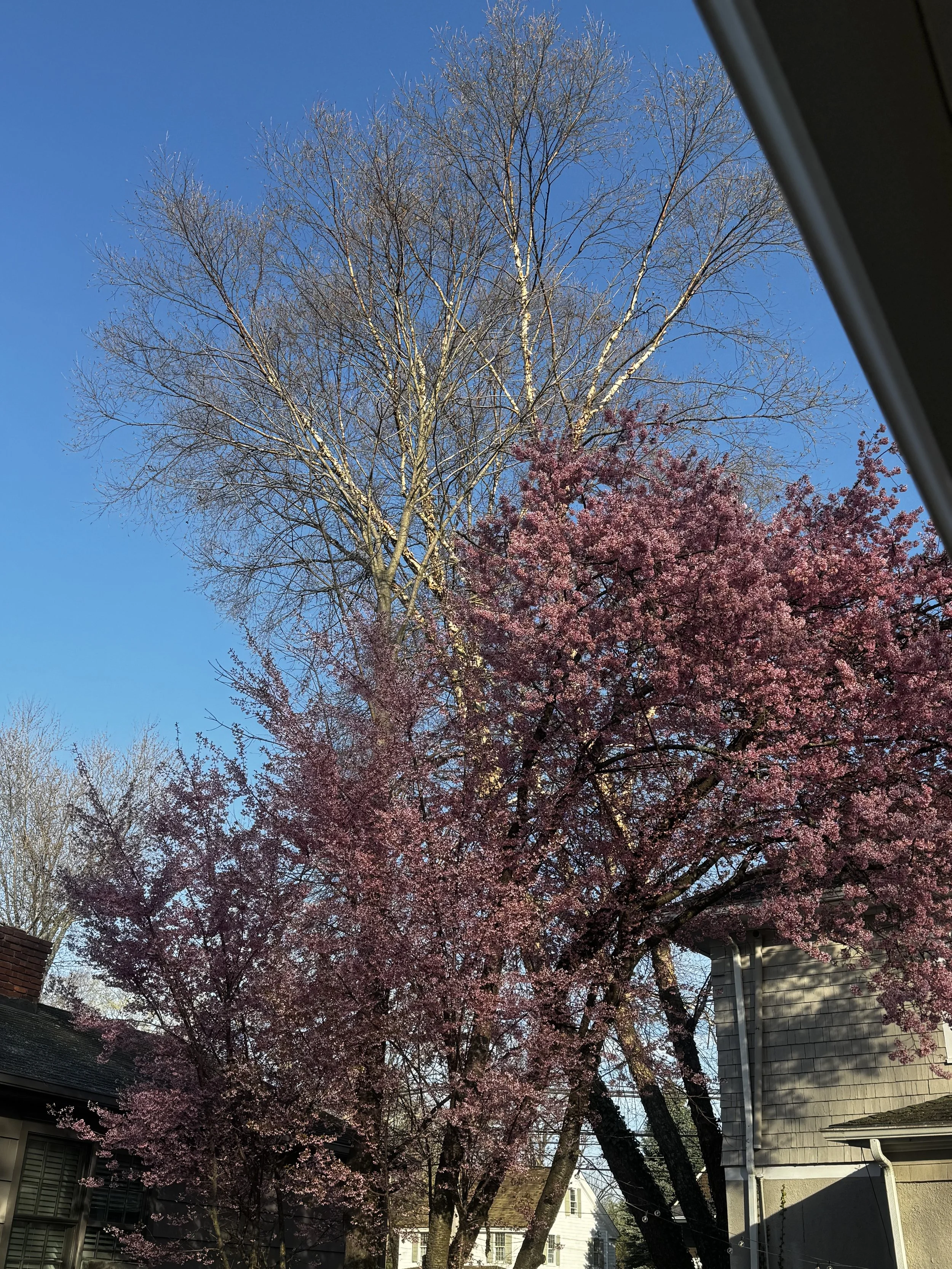 Morning coffee in your garden, is there anything better? Now sitting here on the first sunny morning of 57 degrees F ( 14 + grader!) & the birds are singing their flirty spring serenades and some bees are buzzing in my Japanese cherry tree, filled of early pink tender flowers.