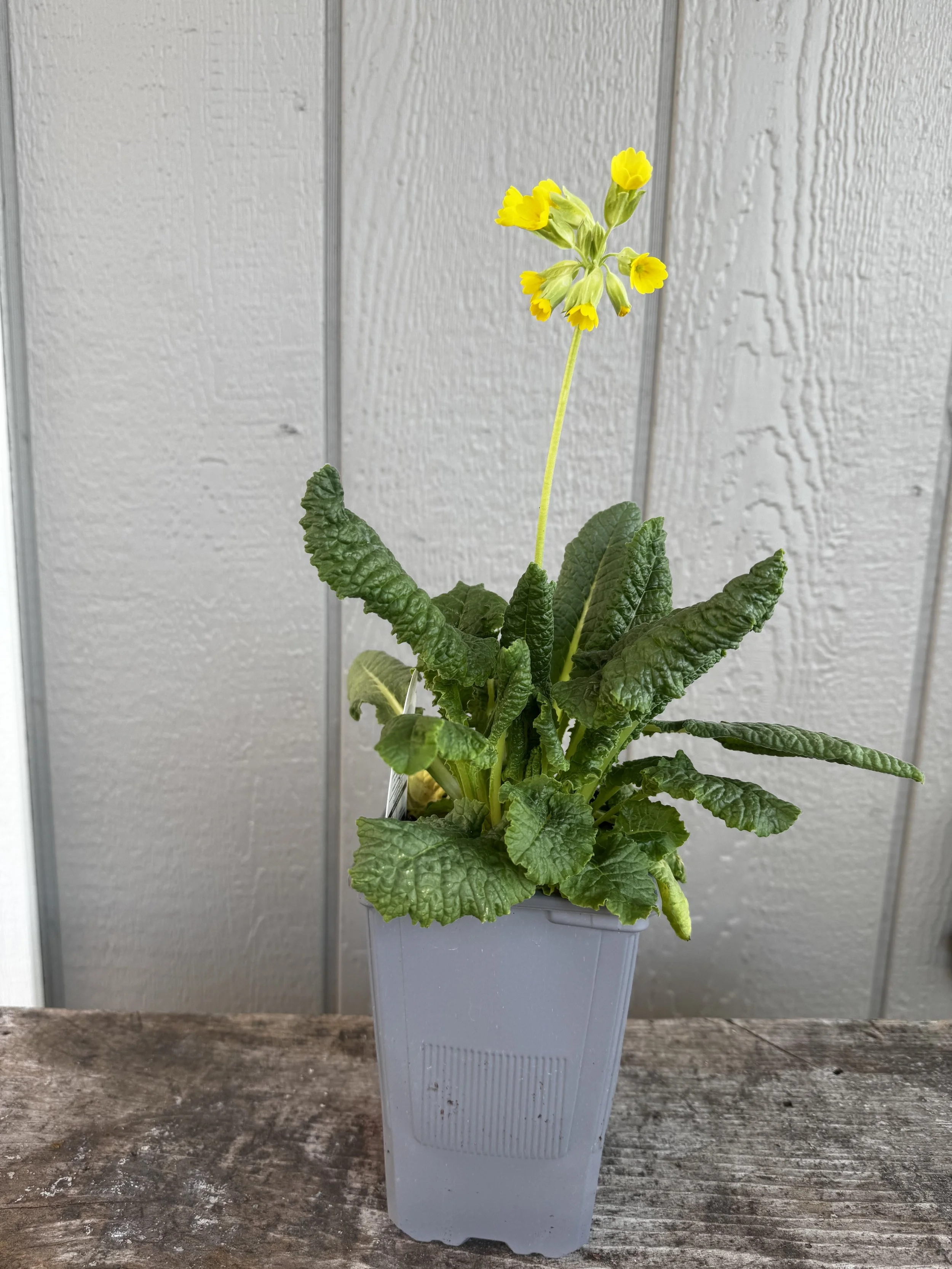 Bought a few Cowslip plants, in Sweden we call them Gullviva, and they make me so happy, with their warm yellow little flowers. One will go in my front garden full of bulb plants, my collection of Frittelarias. But I think one will be here in the back somewhere, hopefully thriving and spreading. Still remembering early spring back home in Vallingby, where we would go to an abandoned old villa, with a wild garden, and we found Gullvivor ( Primula Veris) that we secretly picked and brought home. The joy of those tender first flowers blooming after a long winter. We had a long & cold winter here in Connecticut this year, deepfreeze for weeks in a row. Now that is all behind us, and a new season in the garden is born. Time for another cup of coffee!