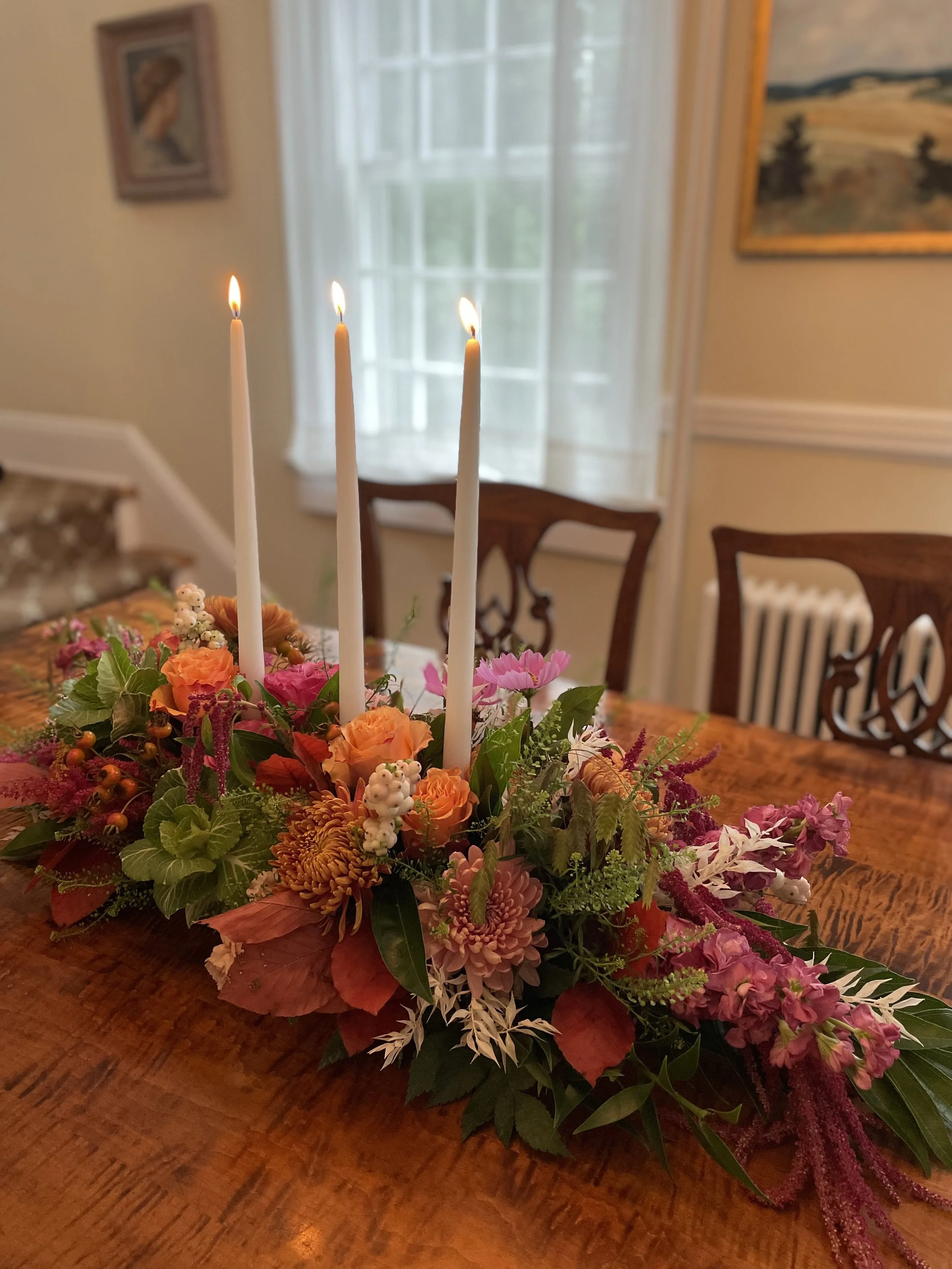 I will work on Thanksgiving center pieces this November, that you can pick up in Fairfield on November 25th. If you have your own container to use that fits your place setting and table, please bring it and lets figure out what we can do. Drop off of containers will be the week of November 17-22. I will also make some pieces that will be for sale. In need of delivery, please contact me and we will see what can be worked out.